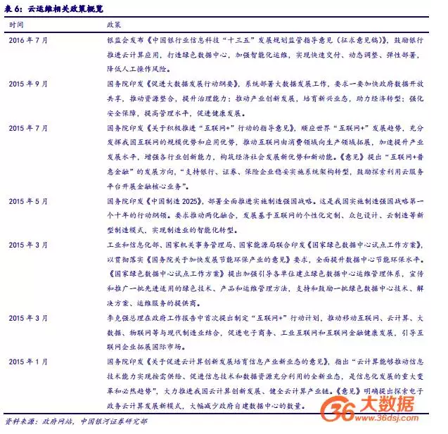 具体产业方面,国家政策大力推动政府部门、制造业、金融业的信息化建设,促进它们与云计算相结合。