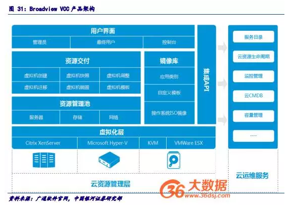 公司的 Broadview VCC云虚拟化控制中心帮助大型企事业单位构建私有云 IaaS,为企业数据中心的云计算基础架构提供市场领先的 IaaS